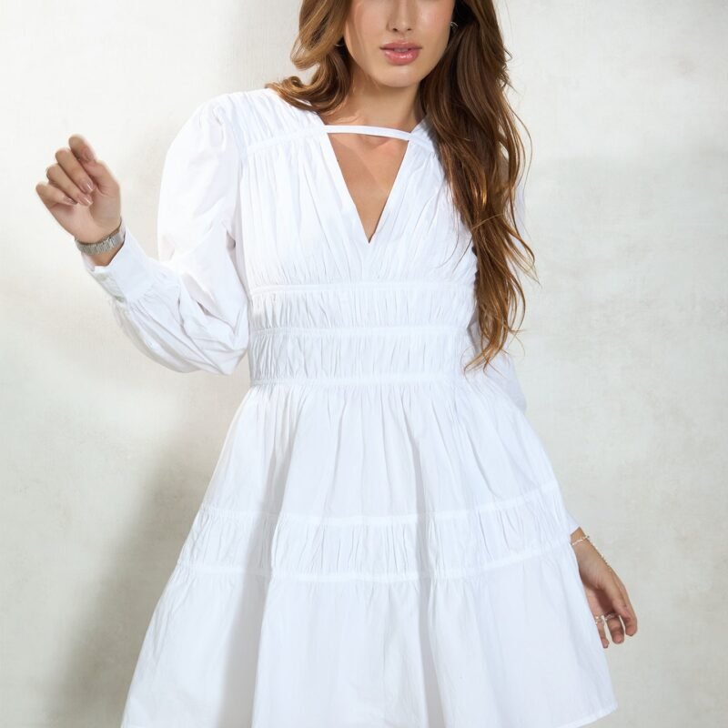 100% Cotton Mini Dress With Blouson Sleeve100% Cotton Mini Dress With Blouson Sleeve
