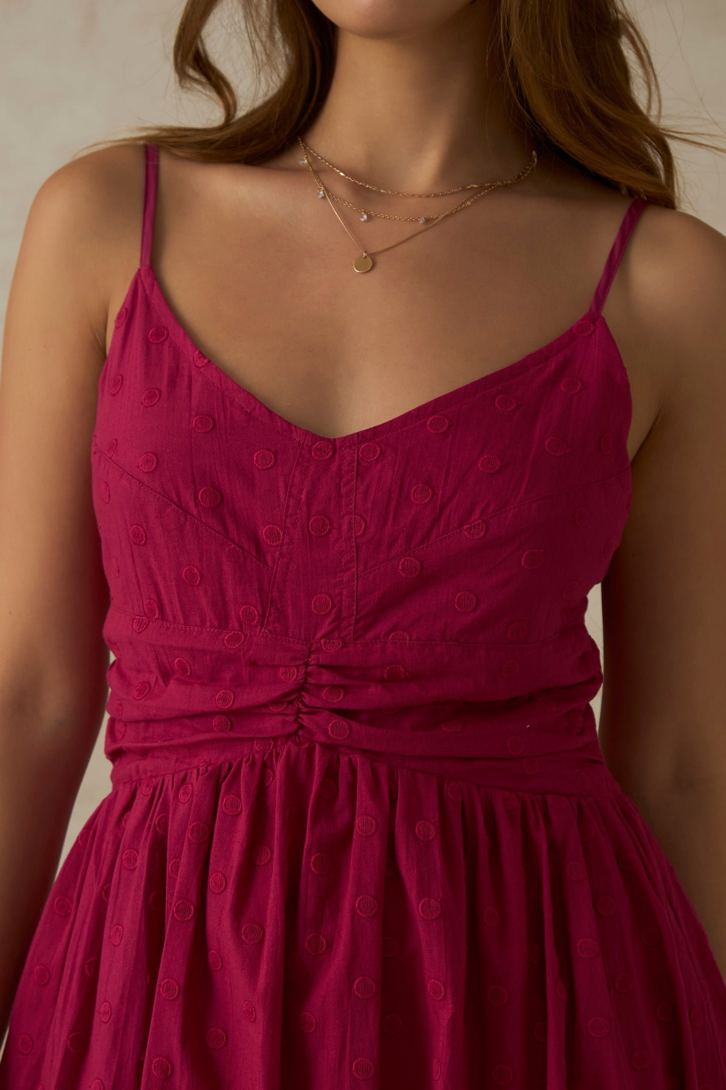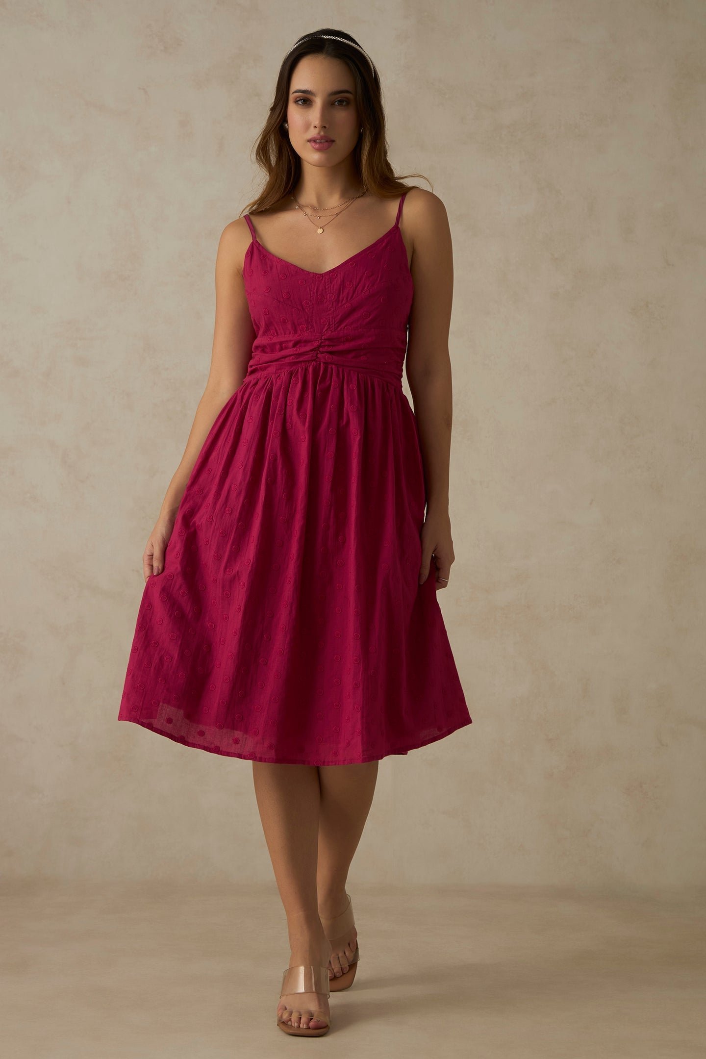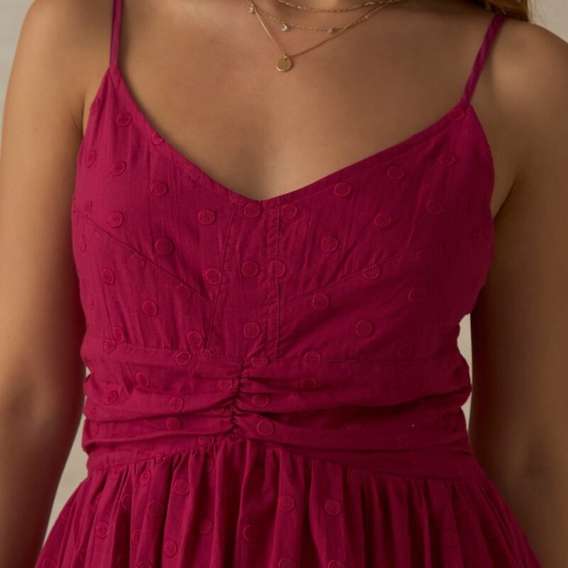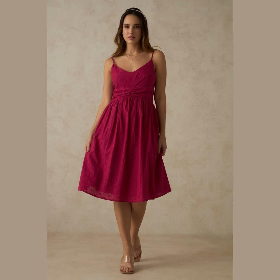 100% Cotton Pink V Neck Ruched Midi DressSelect at least 2 products