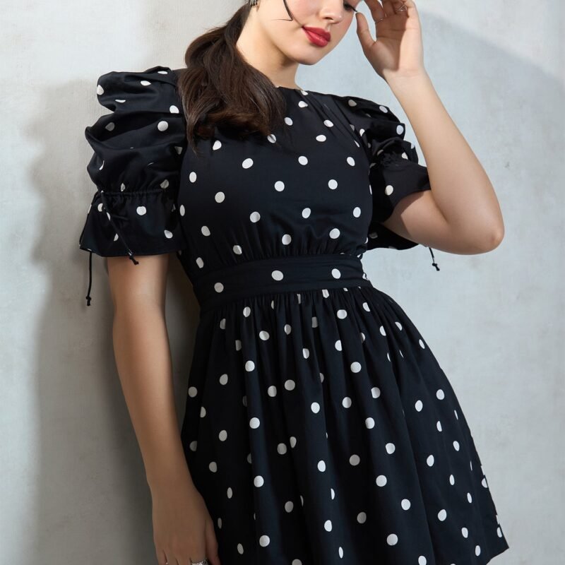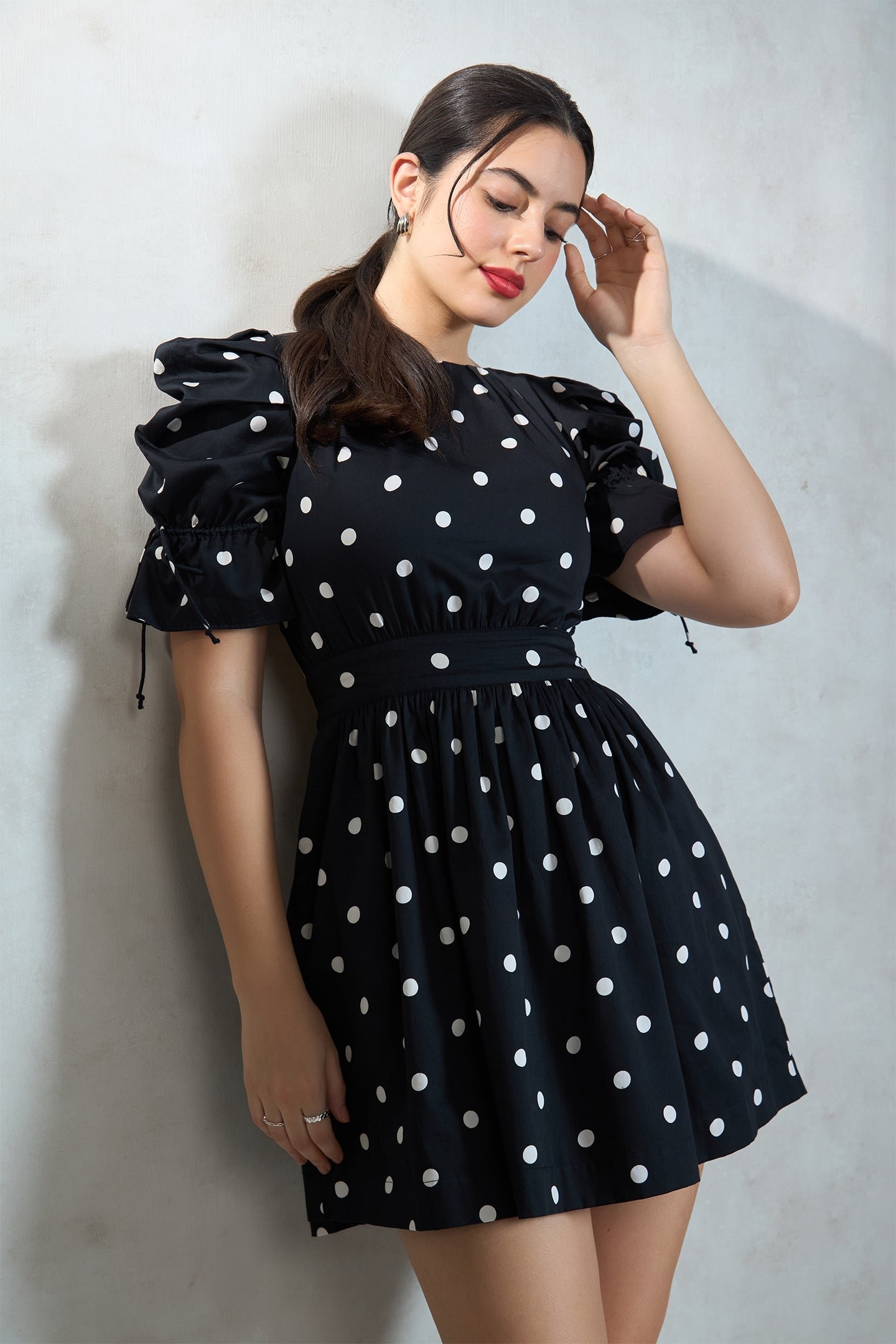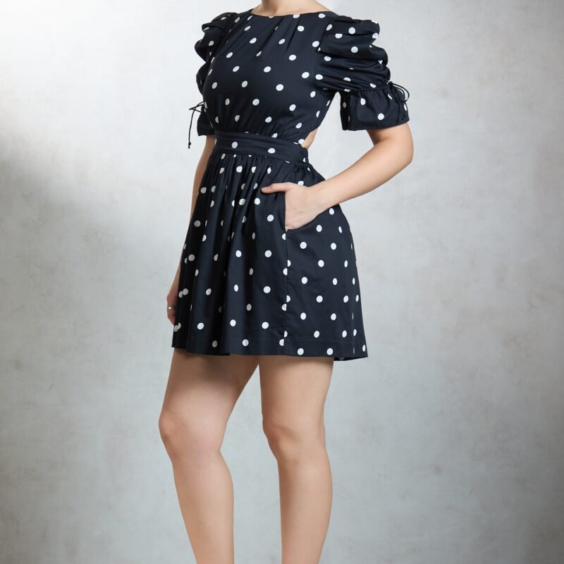 100% Cotton Polka Mini Dress With BowSelect at least 2 products