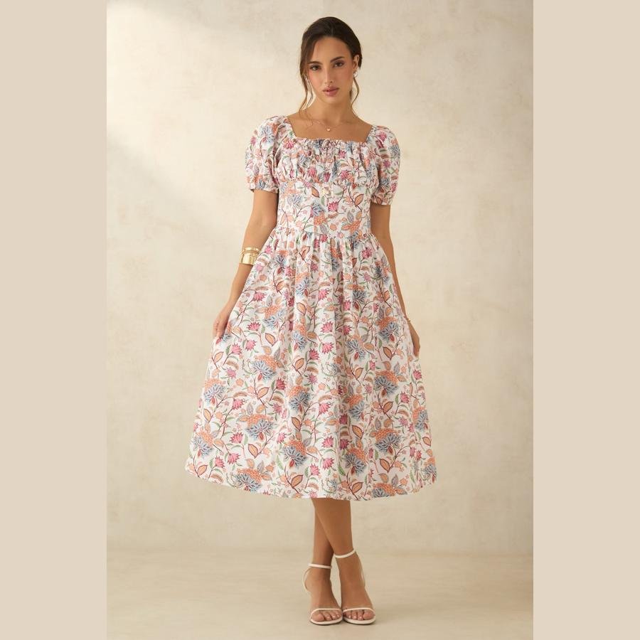 100% Cotton Printed Voluminous Midi Dress100% Cotton Printed Voluminous Midi Dress
