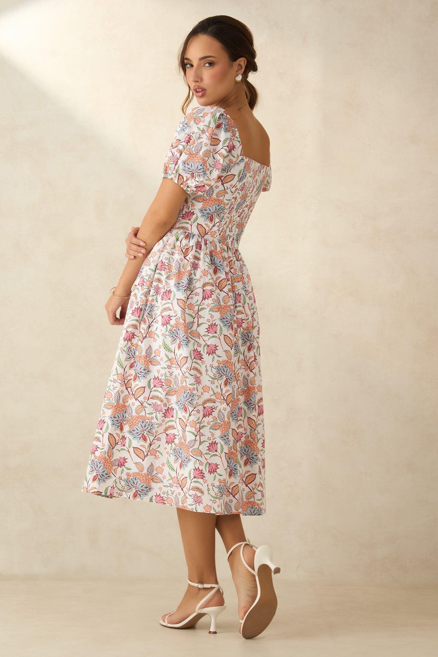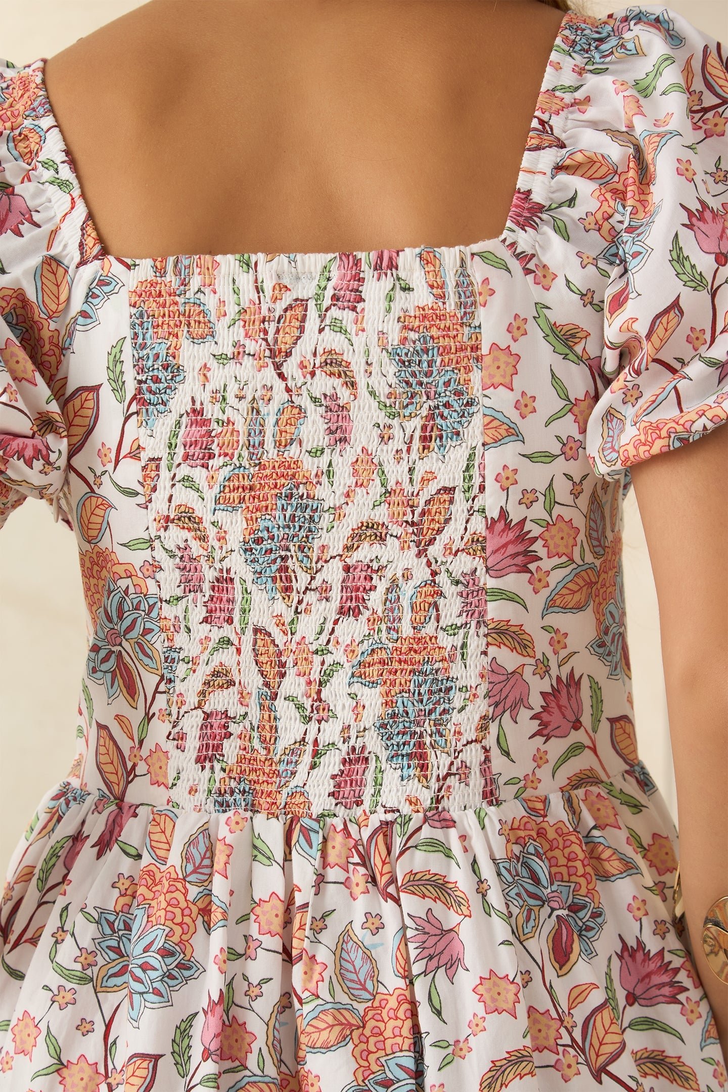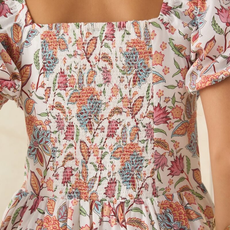 Designed With Short Puff Sleeves And Smocked Back