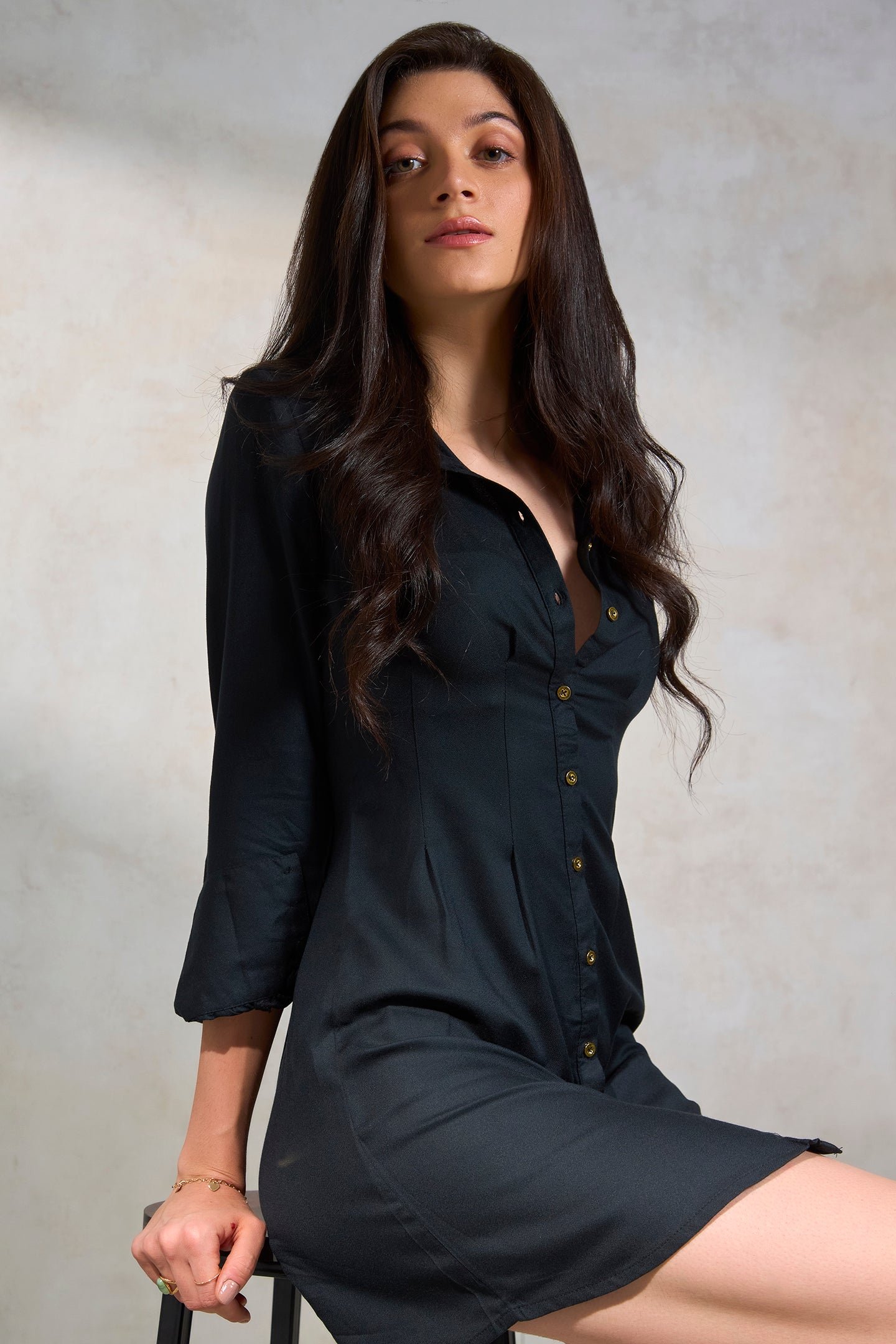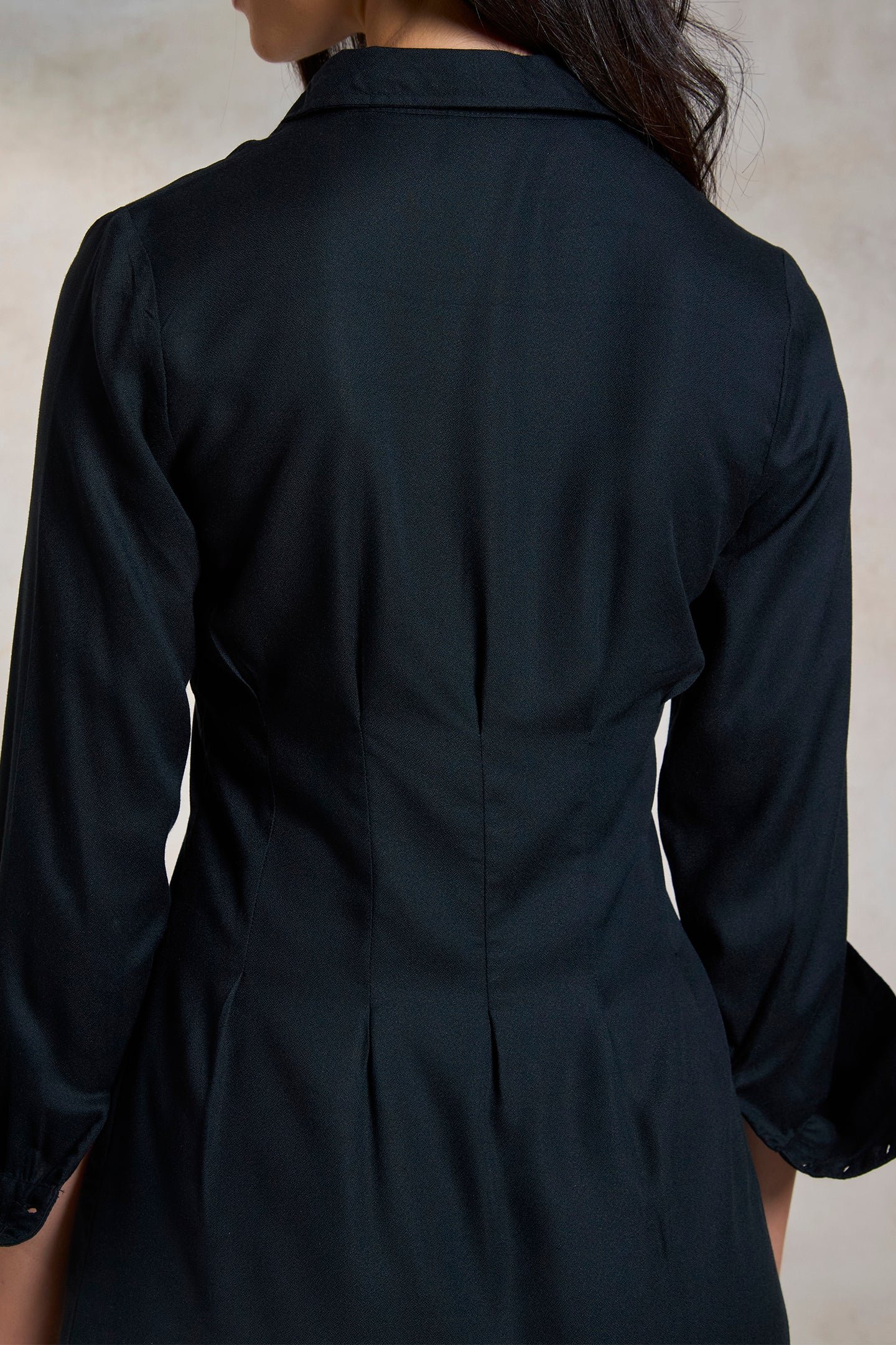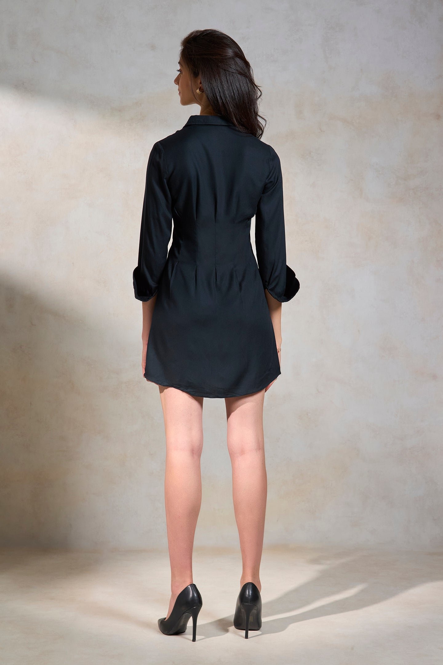 A Black Mini Shirt Dress Crafted From Pure Viscose.