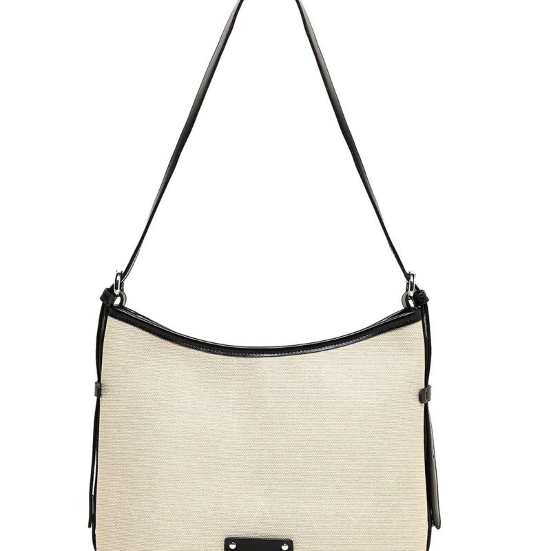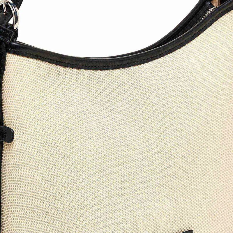 Simple yet sophisticated, this Beige Canvas Shoulder Bag with Black Trim and Mini Wallet Pouch is the perfect addition to your casual wardrobe. Crafted from durable canvas and enhanced with sleek black faux leather trim, it embodies understated elegance and functional style. The included mini wallet pouch provides extra convenience and completes the look.