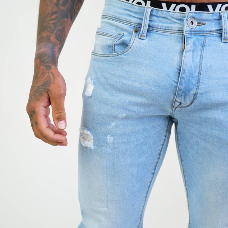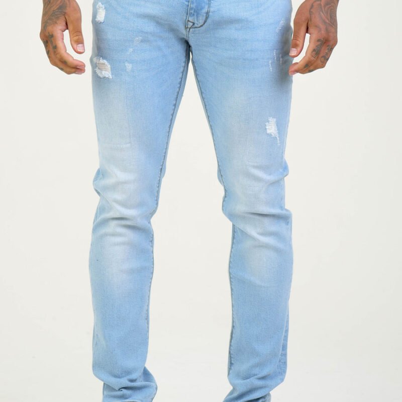 Introducing the Belmont Tapered Jeans, a fashion-forward mens paint splatter tapered jean, designed to elevate your streetwear game. The Belmont tapered jeans come in 5 shades and are constructed with an edgy paint distressed detailing, (Please note that distressed detailing may vary), and a sleek tapered fit, these jeans are a must-have for those who want to make a statement with their style.
