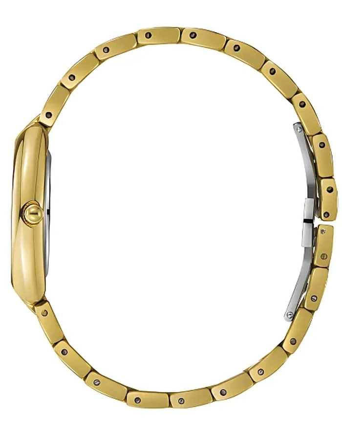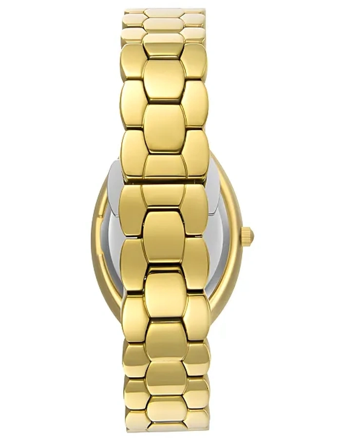 Tonneau Super Metal Gold Case With Analog Display, Mother of Pearl Dial 27 mm Case Diameter, 2025 Movement, 5 ATM Water Resistant Gold Metal Bracelet With Clasp.