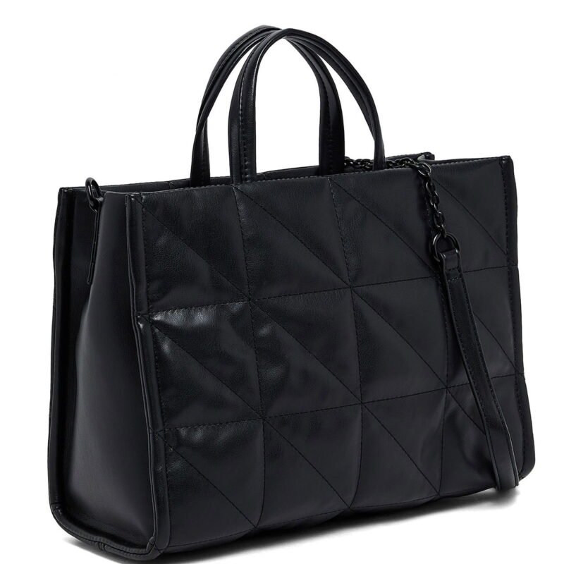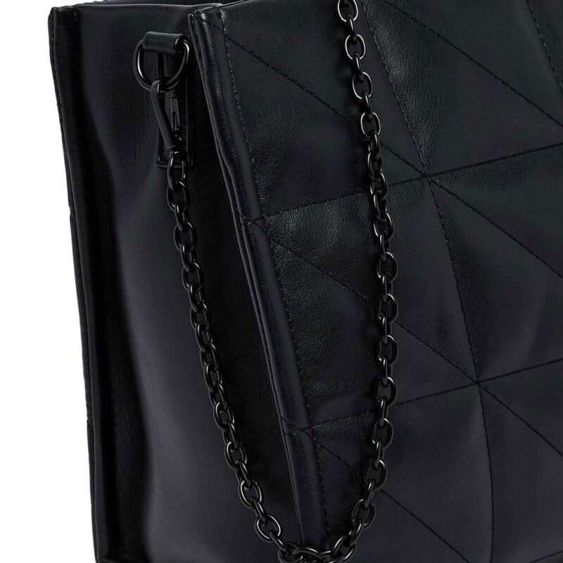 Chic meets function with this Black Quilted Geometric Shopper Tote bag, designed for women who appreciate understated luxury. The bold geometric quilted pattern adds texture and depth to its sleek silhouette, while the soft leather-look finish ensures durability and everyday elegance.