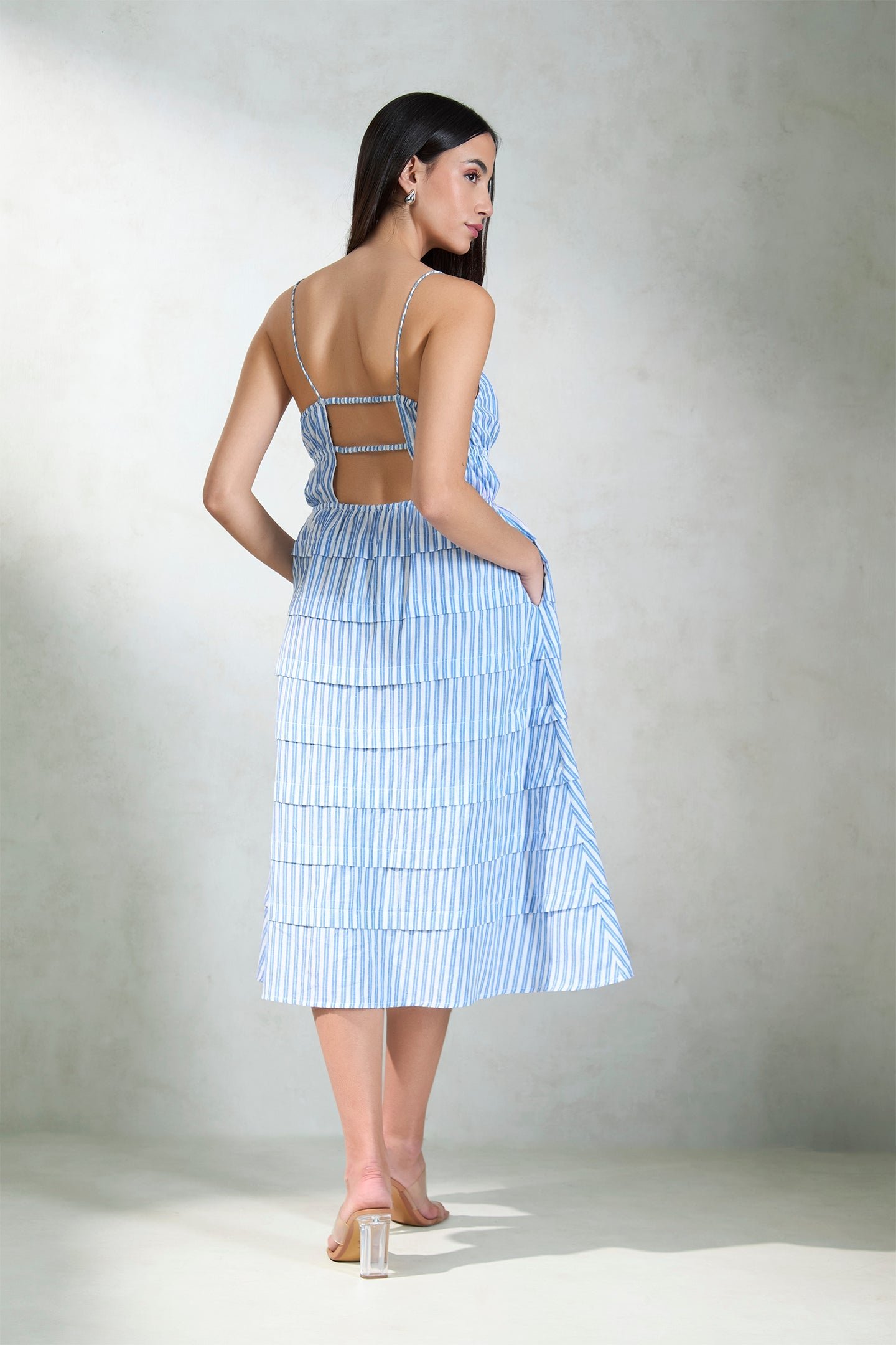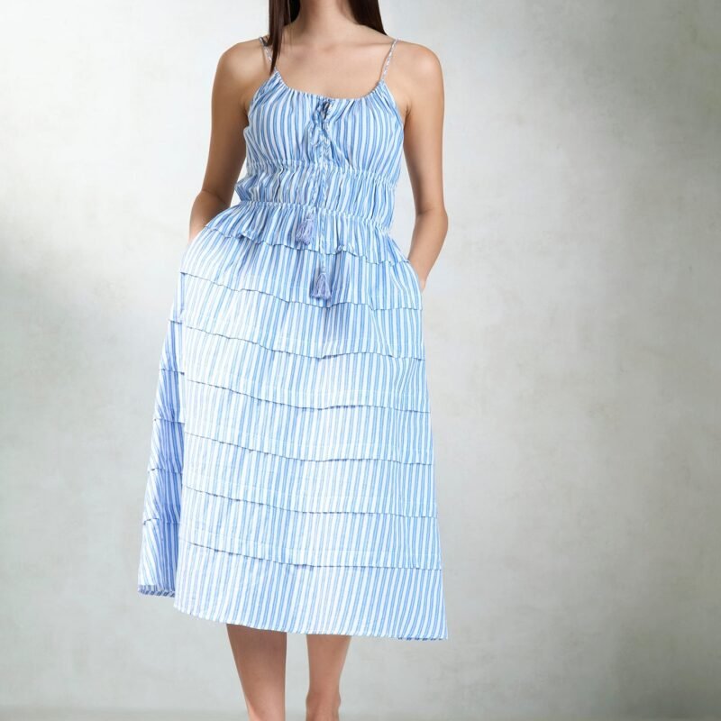 Blue Striped Tiered Midi DressSelect at least 2 products