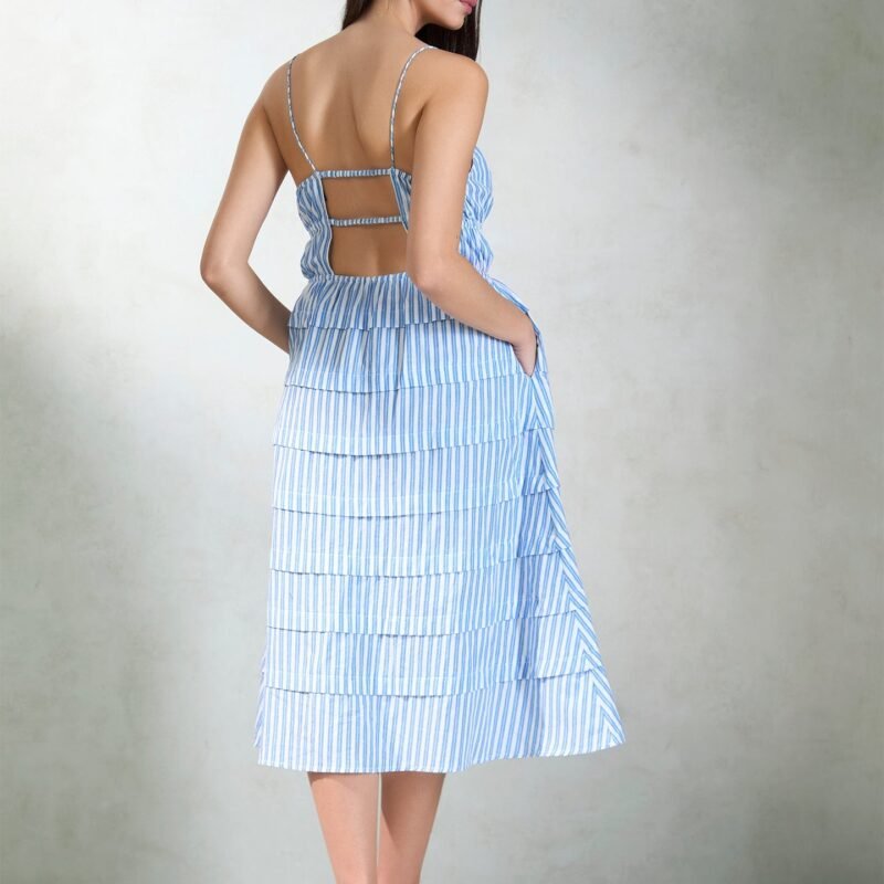 Blue Striped Tiered Midi Dress