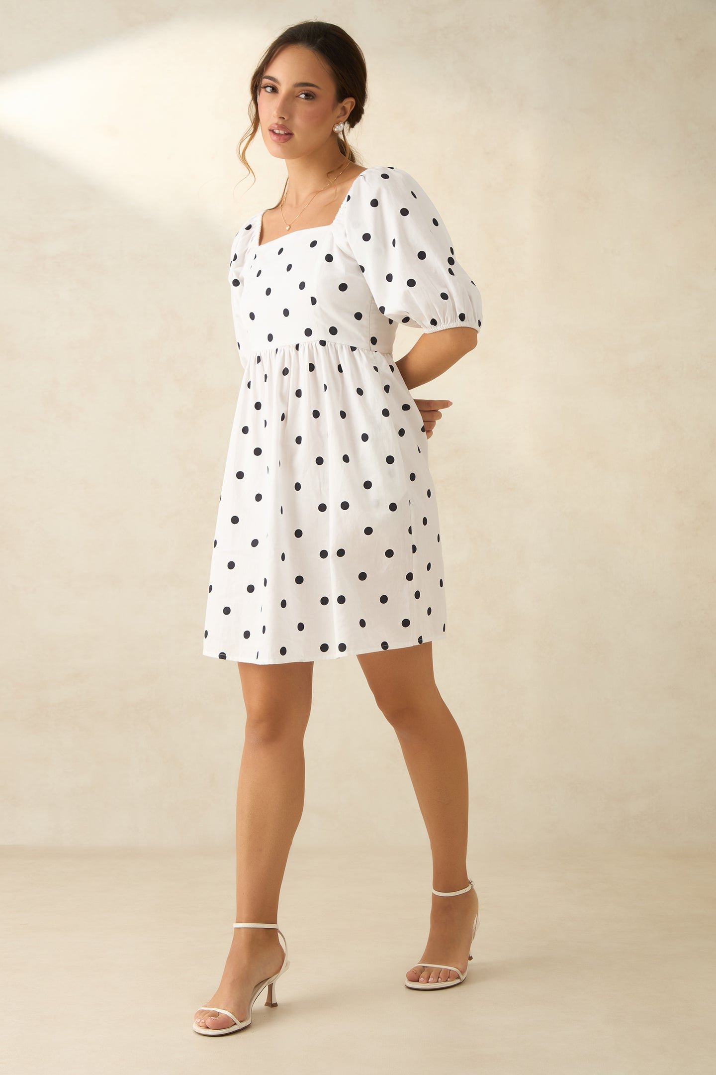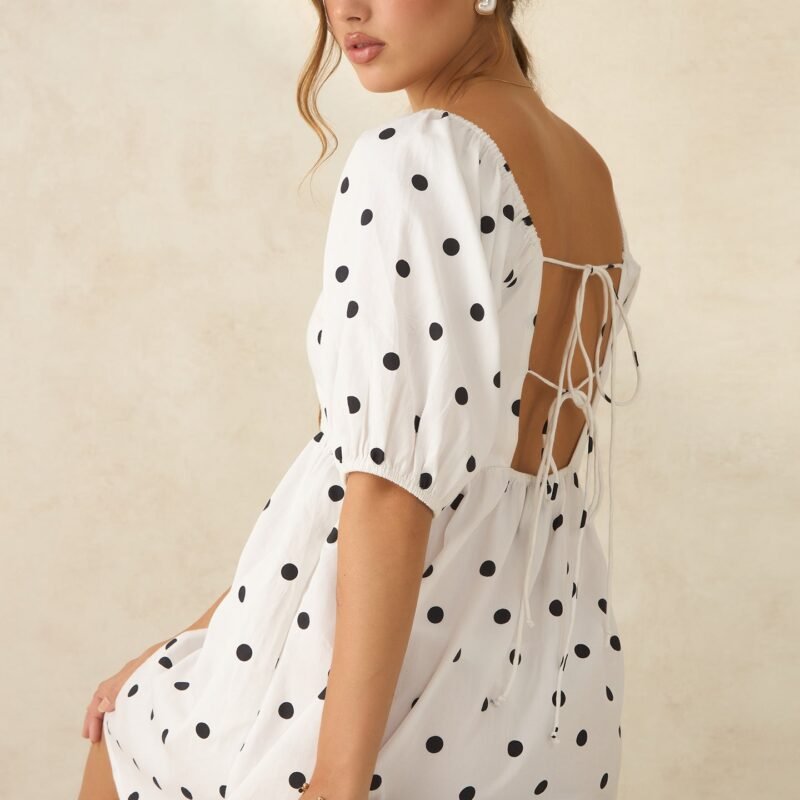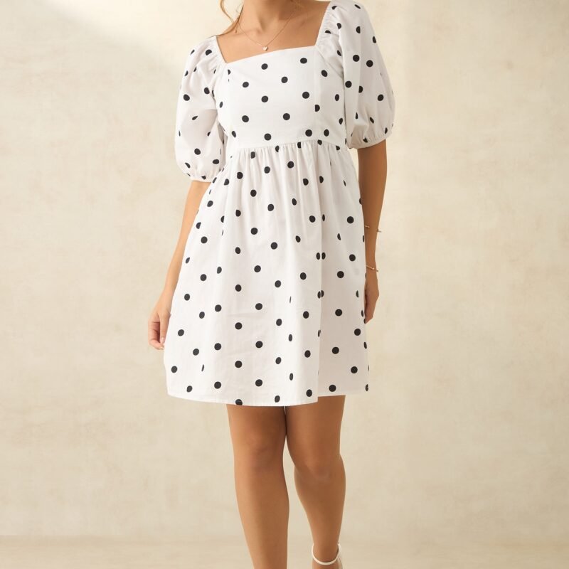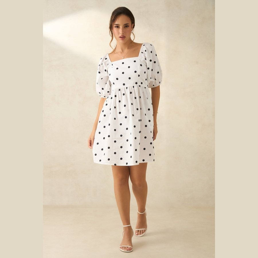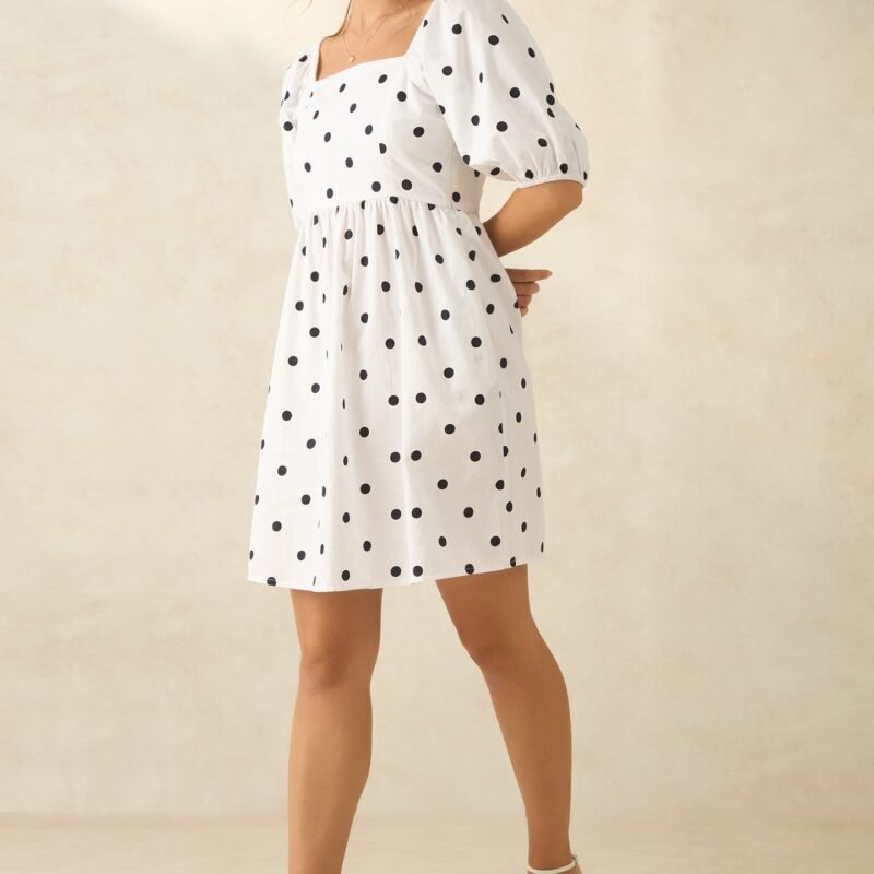 White And Black Polka Mini Dress
