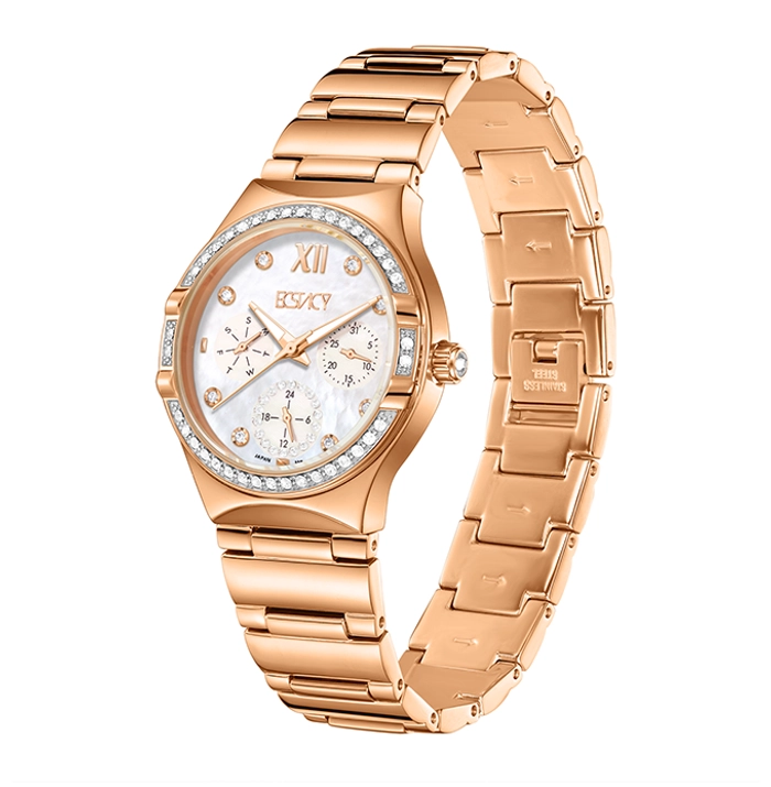 Ecstacy Women’s Rose Gold MOP Dial Multi Function Watch