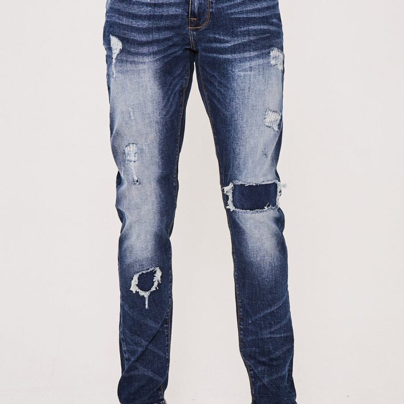 Expertly crafted for a stylish look and comfortable fit, our Taper Fit Jeans in Dark Blue are made with stretch denim and feature a trendy distressed, rip and repair design. The tapered fit offers a modern, casual silhouette while the cotton rich fabric ensures both breathability and durability. Elevate your denim game with these versatile, high-quality jeans.