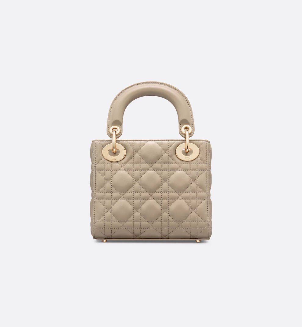 The Lady Dior Bag in elegant taupe lambskin is a timeless piece of modern luxury. Embellished with the signature Cannage quilted pattern and polished gold-tone hardware, this bag embodies the spirit of sophistication and refinement. Its versatile tone complements any wardrobe, making it a perfect companion from day to night.