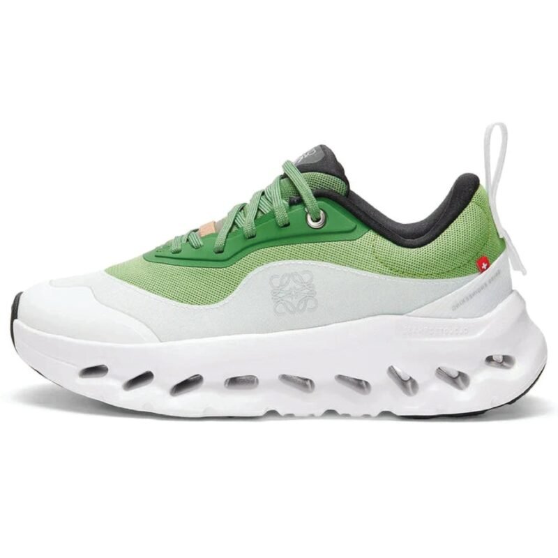 Vibrant, sculptural, and uncompromising—the Loewe x On Cloudtilt Green redefines technical luxury with bold color and movement. A limited-edition fusion of Swiss performance and Spanish design, this sneaker pairs CloudTec® Phase cushioning with Loewe’s signature minimalism, crafted to elevate your every step.