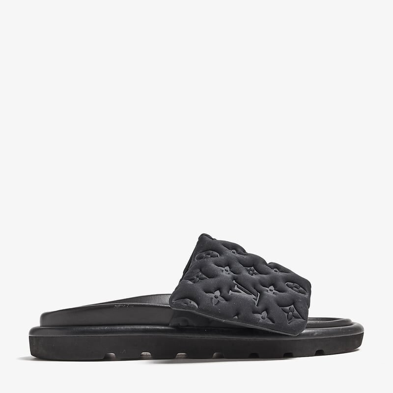 Step into bold luxury with the Louis Vuitton Black Monogram Slides. Crafted with a padded nylon strap embossed with the signature Louis Vuitton monogram, these designer slides combine high fashion with exceptional comfort. The contoured sole ensures all-day ease, while the adjustable velcro strap offers a secure fit. Whether you’re relaxing poolside, traveling in style, or completing a luxury streetwear look, these slides redefine everyday footwear.