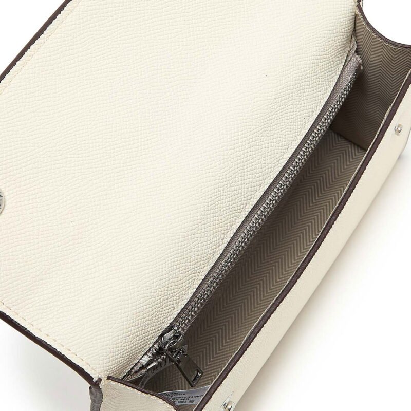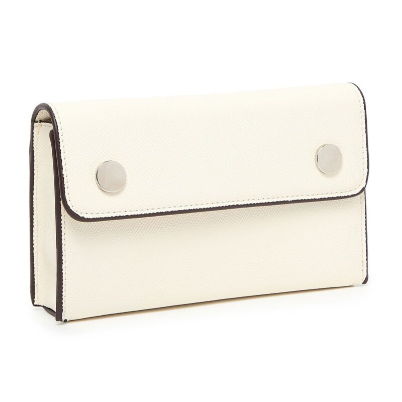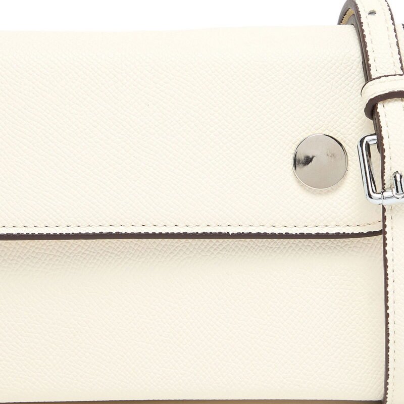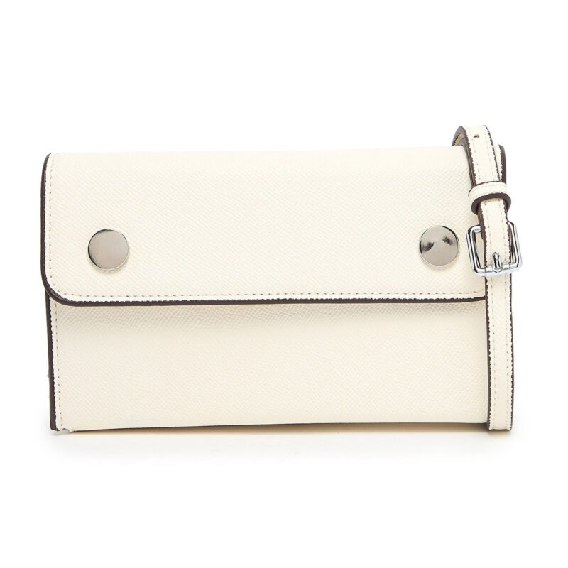 For understated elegance, this Off-White Mini Crossbody Bag is the perfect accessory. Crafted from premium textured faux leather in a soft off-white tone, it combines minimalist design with practical style. The flap is secured with two silver-tone snap buttons, adding a sleek finishing touch.