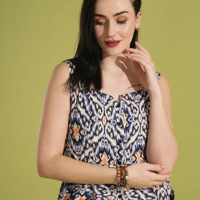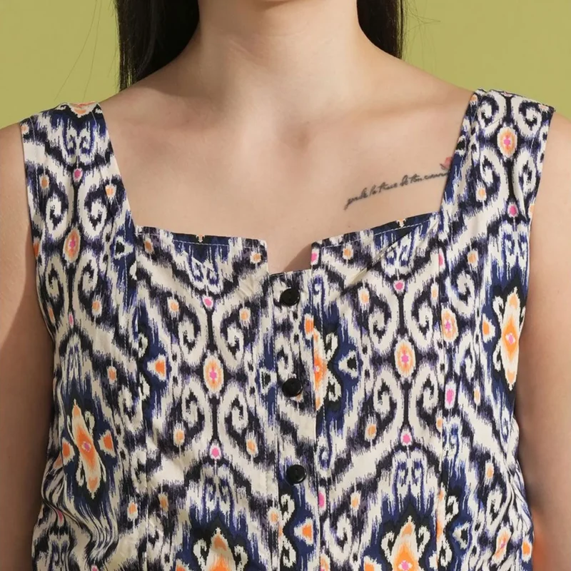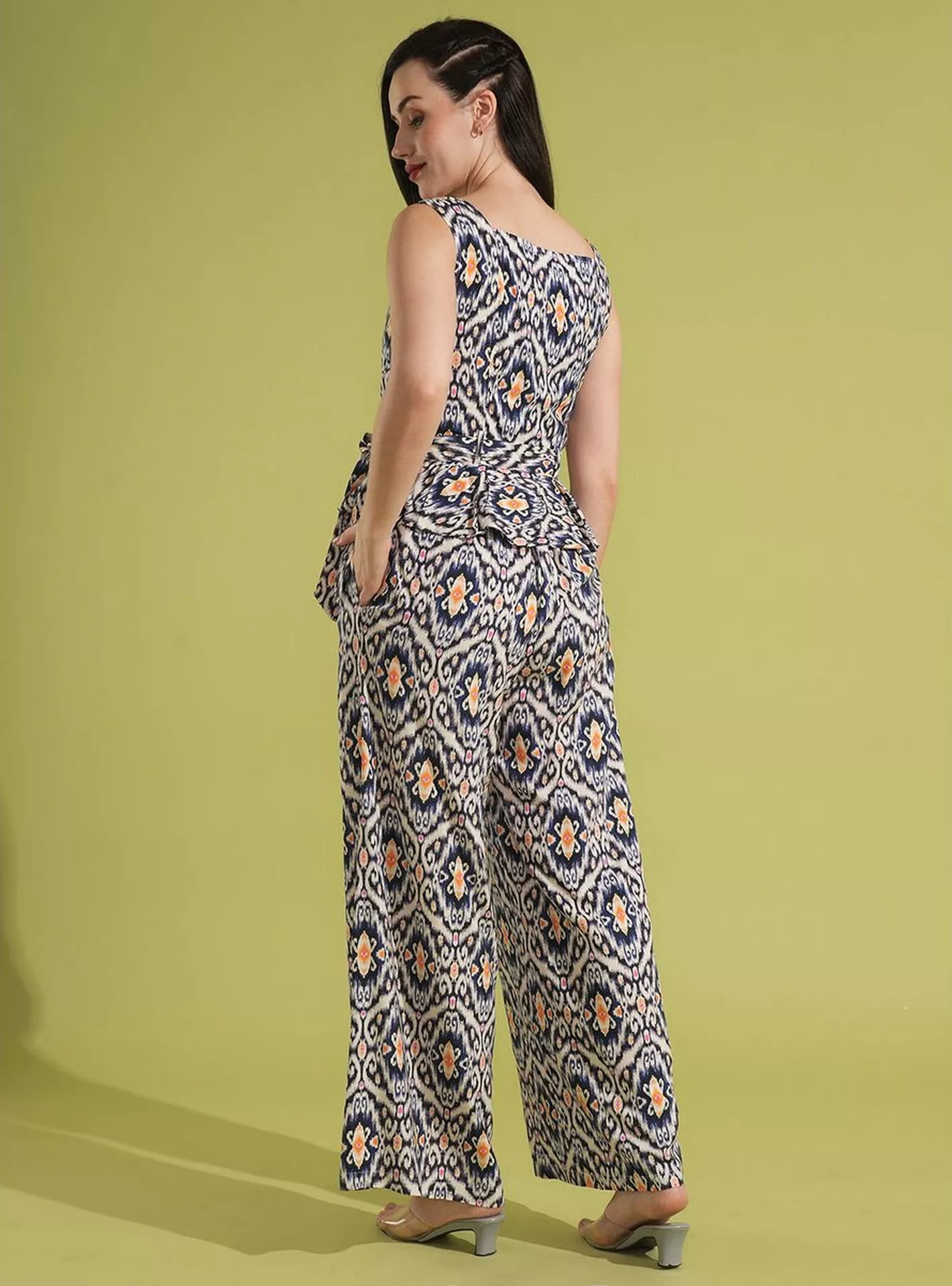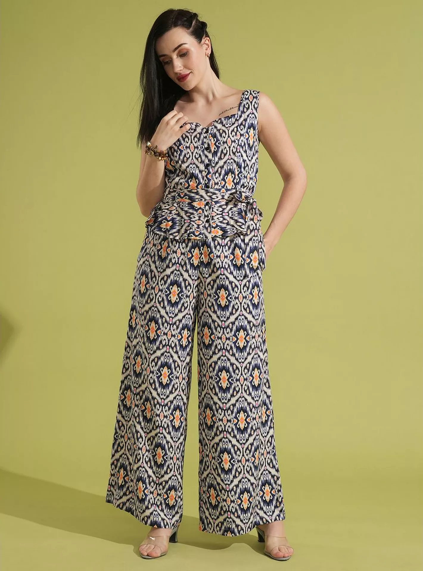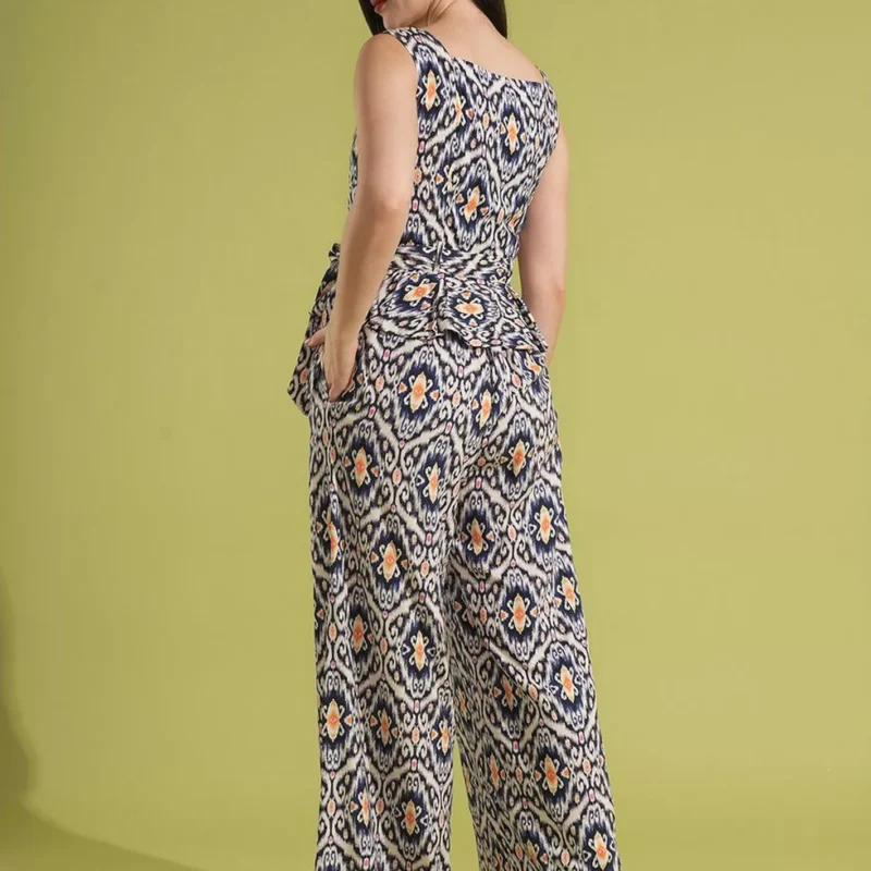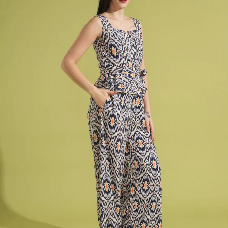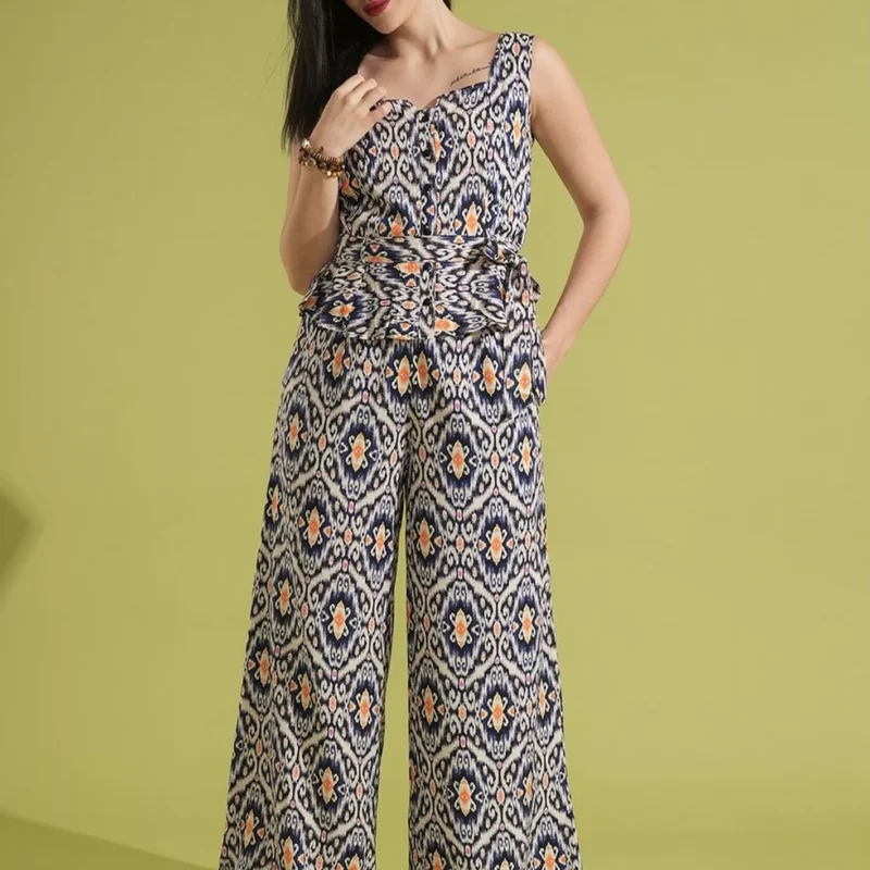 Print Waist Tie-Up Peplum Top and Trouser