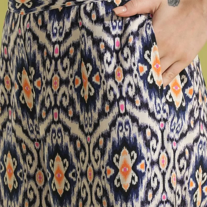 Navy Blue Linen Look Top and Wide Leg Pants