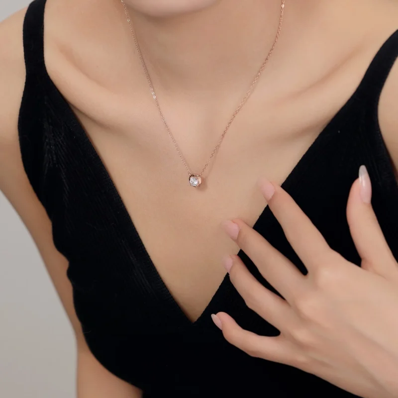 Elevate your style with our sterling silver rose gold chain, featuring a solitaire pendant encircled elegantly. This timeless piece adds a touch of sophistication to any outfit, making it perfect for both everyday wear and special occasions.