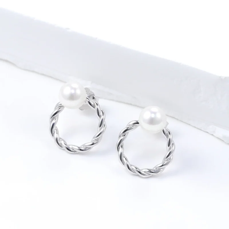 Adorn your ears with our sterling silver round-shaped studs, featuring a lustrous pearl at the center. These elegant earrings blend classic sophistication with timeless beauty, making them a perfect accessory for any occasion.