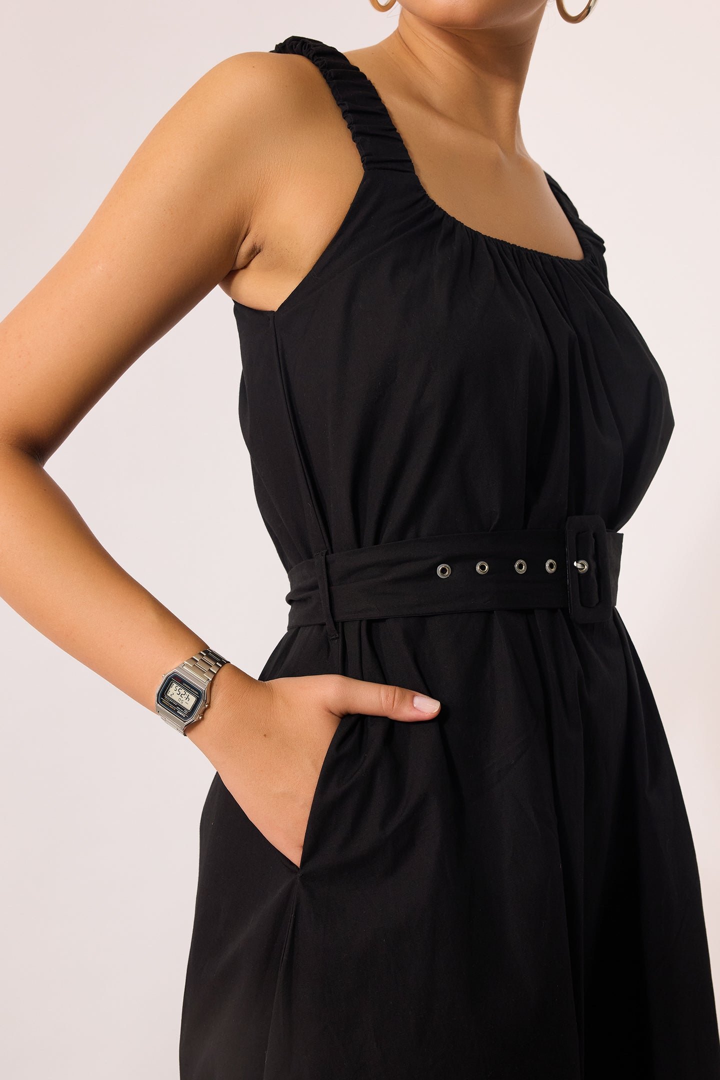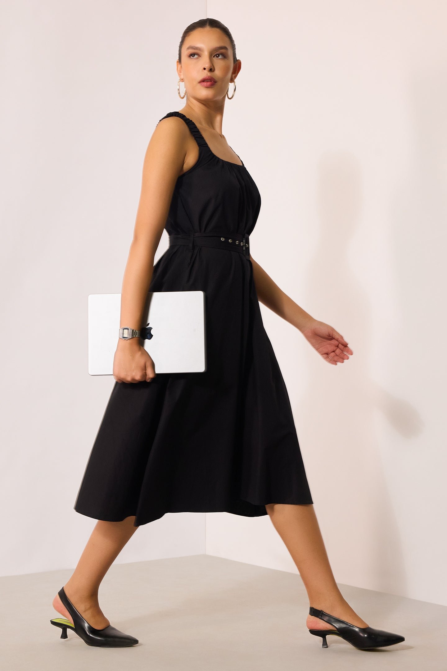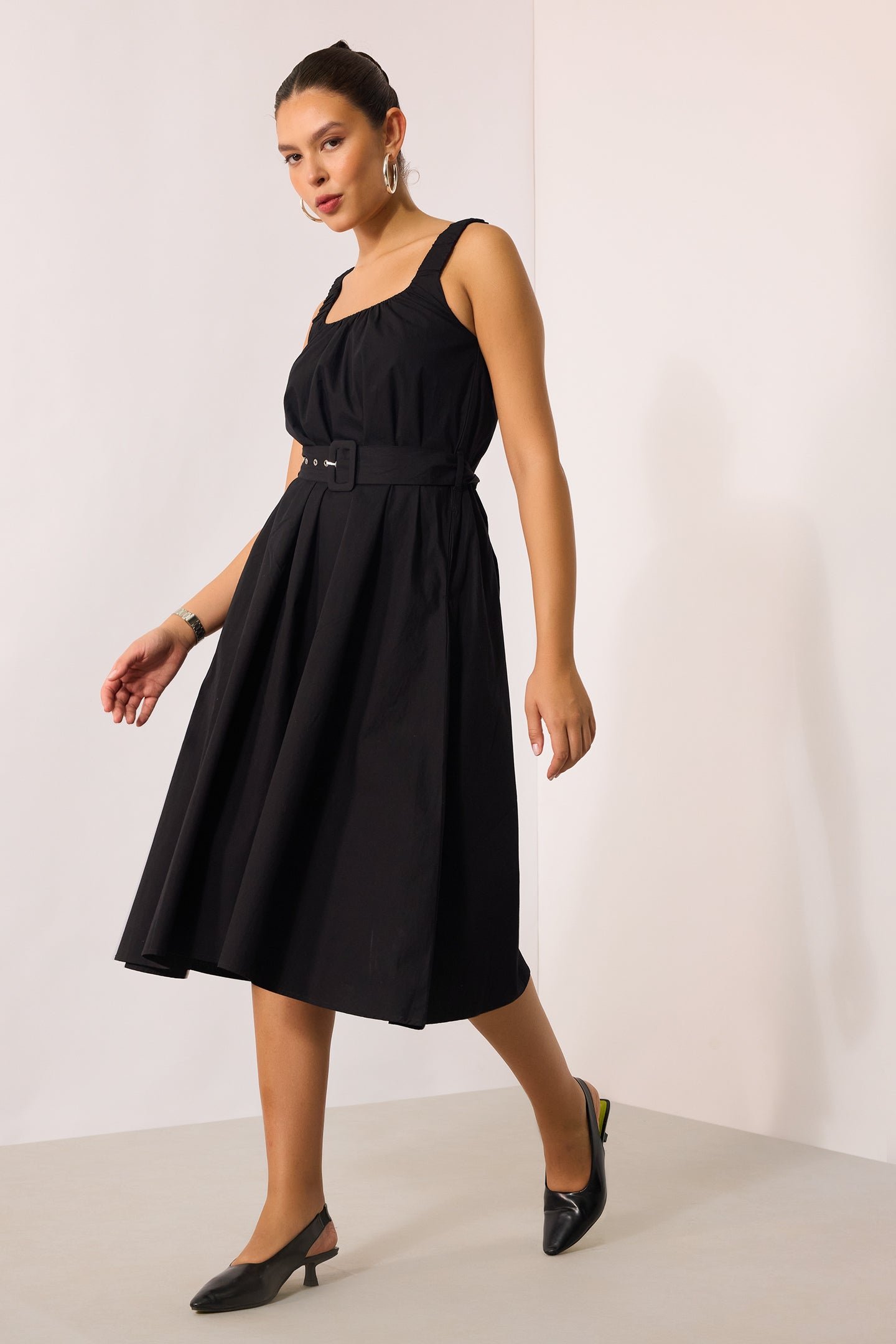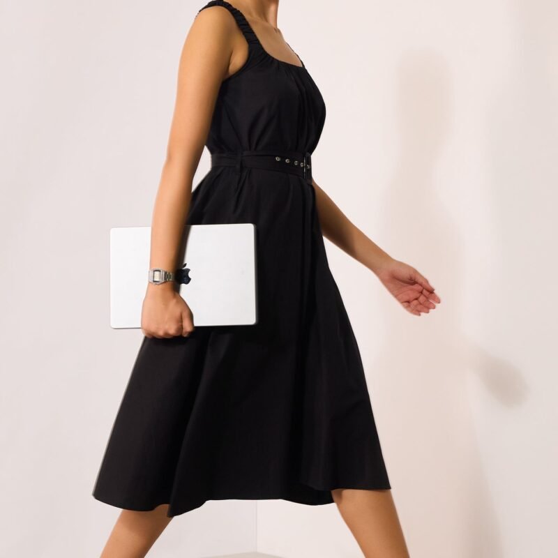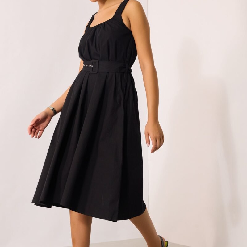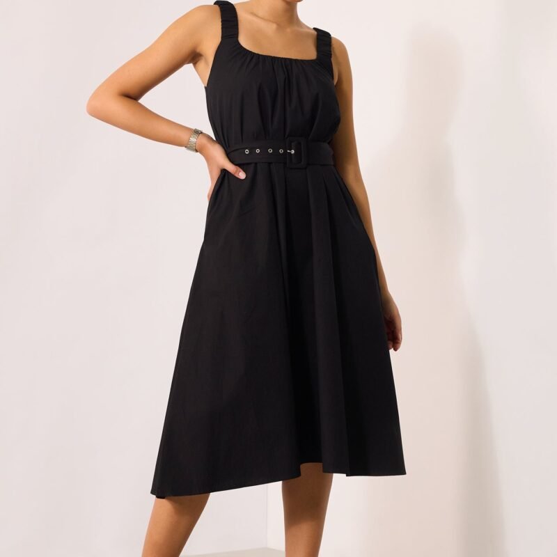 Black Midi Dress With Belt